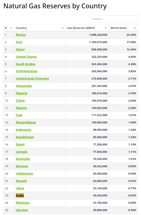India consumes around 60–65 billion cubic meters (bcm) of natural gas every year. But we produce only about half of that. The rest has to be imported for one simple reason: India is just resource-poor in gas. We have plenty of coal, some oil, but gas reserves are small, scattered, and tricky to extract. Unlike Qatar or Russia, there isn’t a vast underground bounty waiting to be tapped. To give you context, we don’t even hold 1% of natural gas reserves that have been discovered yet.