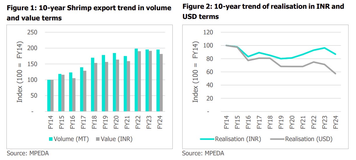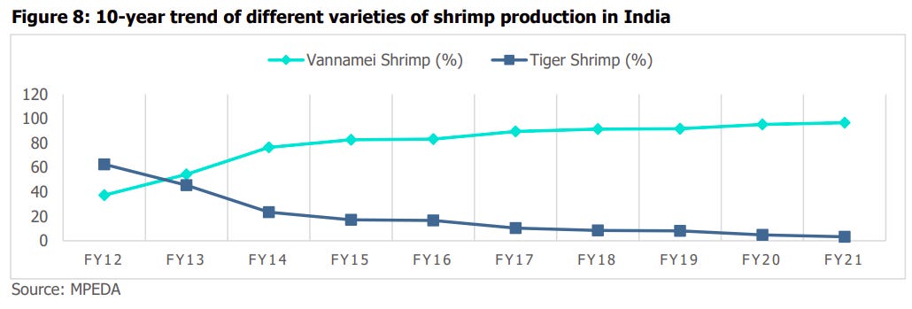 Today, we are looking at the shrimp sector. We never really went into this space before, so our understanding before writing this piece was honestly non-existent. But from what we’ve read, this is one of those rare industries where India is vying for global leadership.