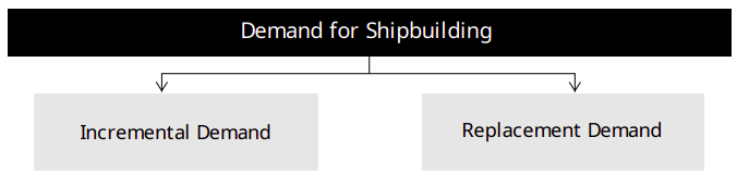 Ship demand comes in two forms: either new ships are made to accommodate more trade demand, or older vessels with a 20–30 year lifespan are replaced with new ones.