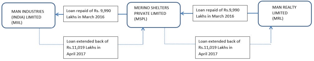 Merino Shelter became a key conduit through which Man Industries pushed out hundreds of crores from the company. On paper, these looked like standard loans and advances. From there, that money would be routed to other related companies — such as Man Realty, another part of the larger group.