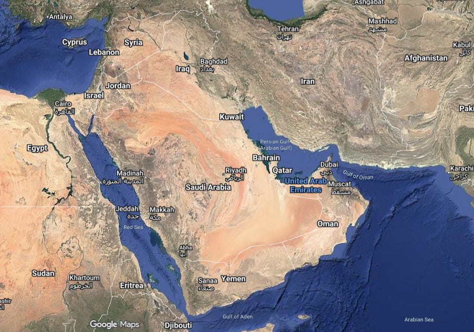 Just below, to the West of the Gulf is Kuwait, which produces ~2.5 million barrels of oil a day. Lower down, along the edge of the Gulf, is Qatar — which produces a relatively modest 600,000 barrels a day, along with 1.3 million barrels of natural gas. Below that is the United Arab Emirates, with an output of just under 3 million barrels a day.