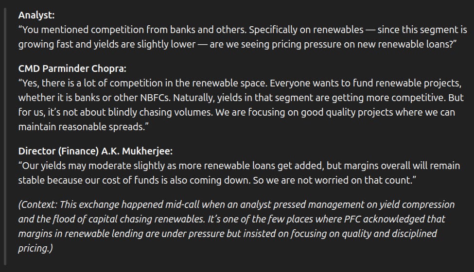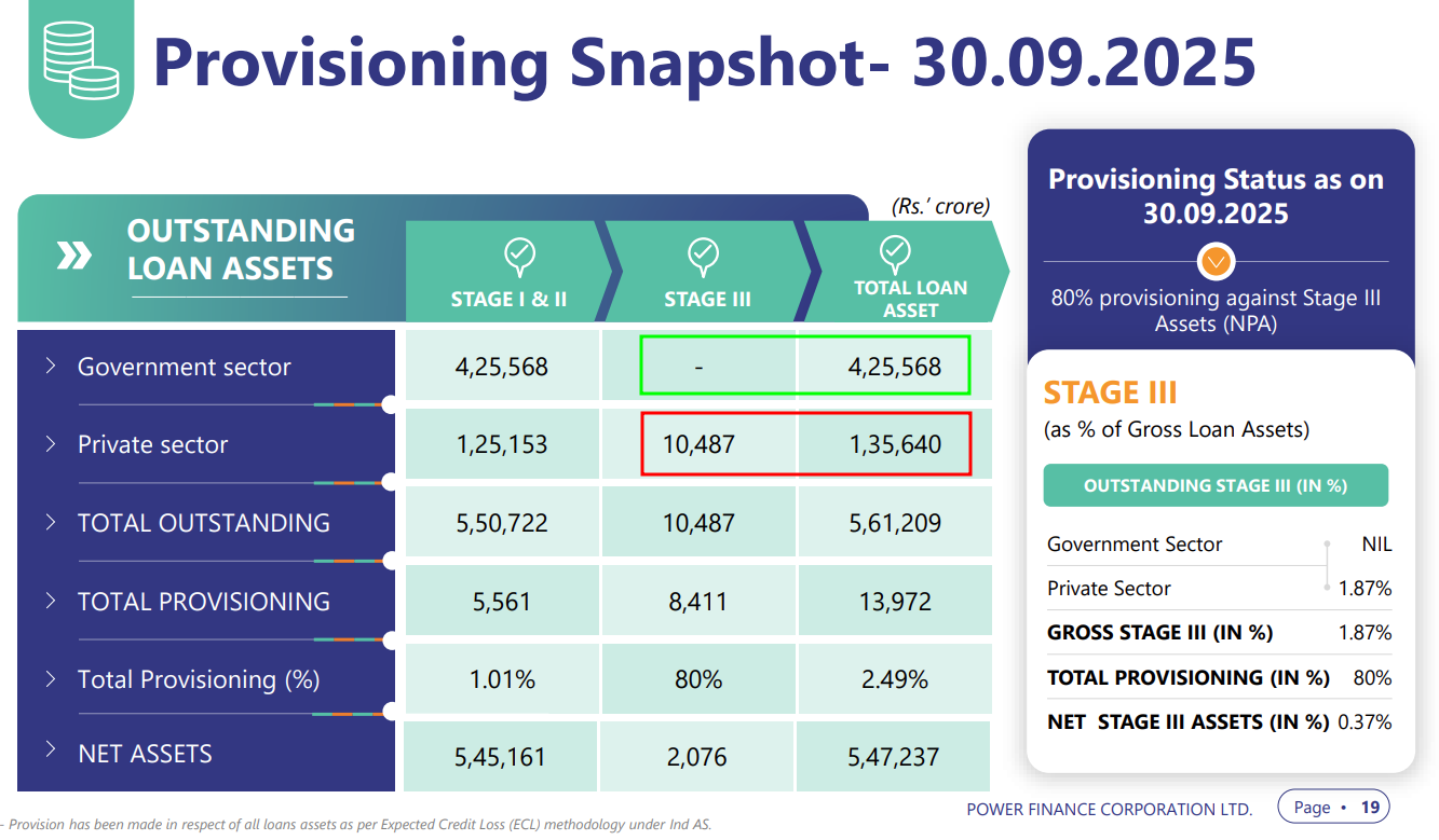 So, the main takeaway from PFC’s pristine 1.45% NPA is that loans to state utilities are inherently protected. The risk the company takes is much more visible in its private sector lending, where NPAs stand at over ~7.7%.