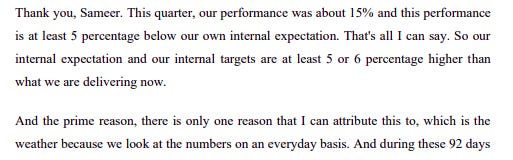 However, Q2 of this year has been unusually bad. And all the fingers point to one suspect: the weather. Here’s Heritage talking about it: