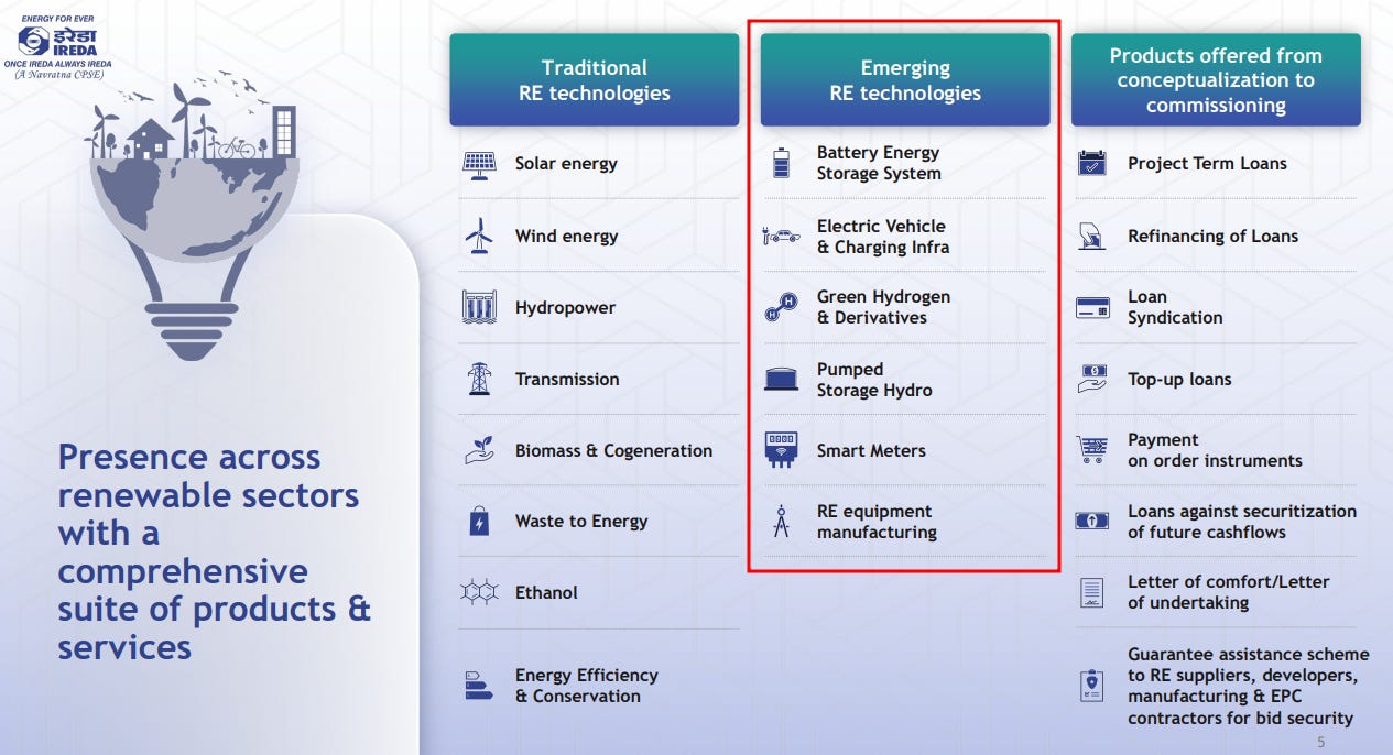 The Indian Renewable Energy Development Agency (IREDA) is the smallest of the trio. But while niche, its role is crucial. It is run under the Ministry of New and Renewable Energy, and focuses exclusively on renewable energy and energy efficiency projects. It has been instrumental in funding solar, wind and hydro projects, and with time, is also focusing on emerging areas like green hydrogen and energy storage.