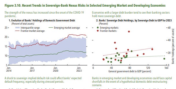 Since CoVID-19, many emerging market banks have significantly increased government debt holdings, often encouraged by regulators. In the short run, this stabilizes markets. But it masks underlying weaknesses and concentrates risk domestically.