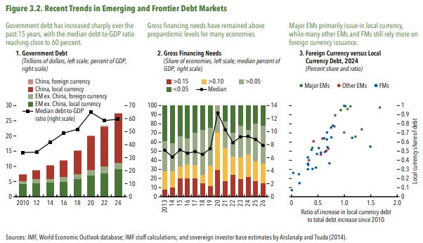 There are some strong advantages to debt localization. For one, it makes EMs more resilient to global shocks. When your debt is in your own currency and held by your own institutions, you’re less vulnerable to foreign investors pulling out capital, or rushing for exits when global financing conditions tighten.