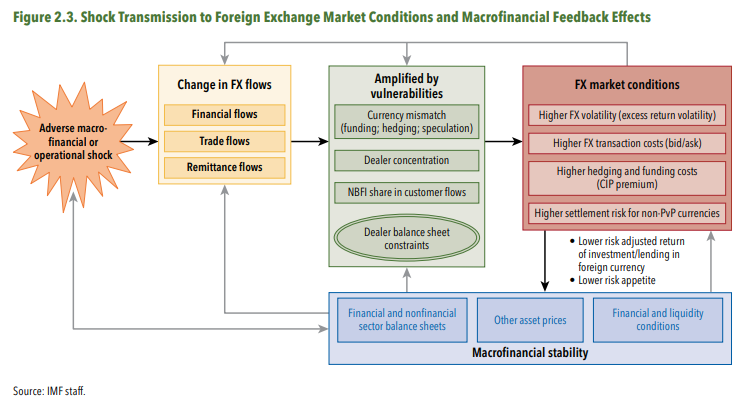 The third thing the IMF report focuses on is foreign exchange, the market for which is the biggest, most liquid financial market in the world. Every day, $9.5 trillion worth of forex trades are executed in the market. All kinds of cross-border flows require this market to work smoothly.