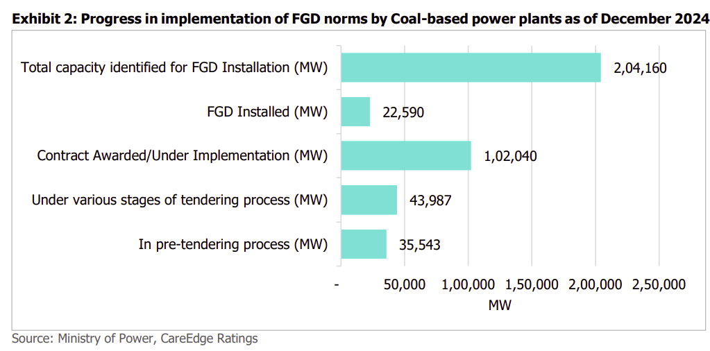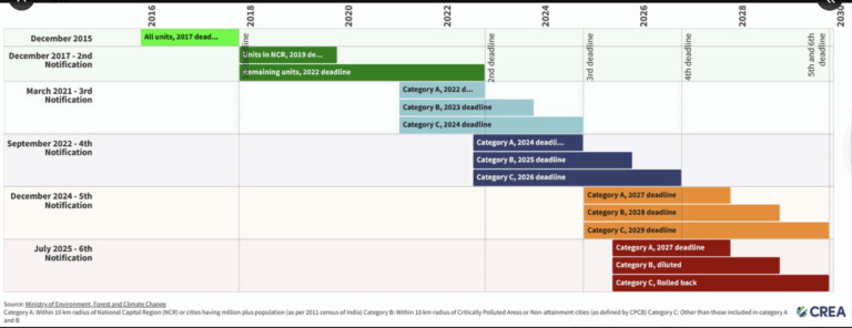 On July 11, 2025, the Environment Ministry issued an order exempting Category C plants entirely from having to meet the SO₂ emission norm. These units — roughly 400 coal-fired boilers totaling ~145 GW capacity — no longer have to install FGDs, as long as they maintain their tall chimneys as per older rules.