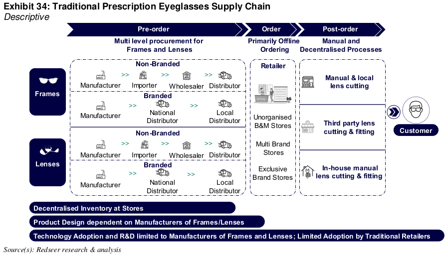 Traditionally, selling glasses was a localised, fragmented business. At least in India, the industry was marked by thousands of independent stores that sourced frames and lenses from various distributor networks — often from abroad — and then relied on local workers to manually cut and fit the lenses. There were multiple layers of middlemen all through the supply chain, each adding markups and time lags.