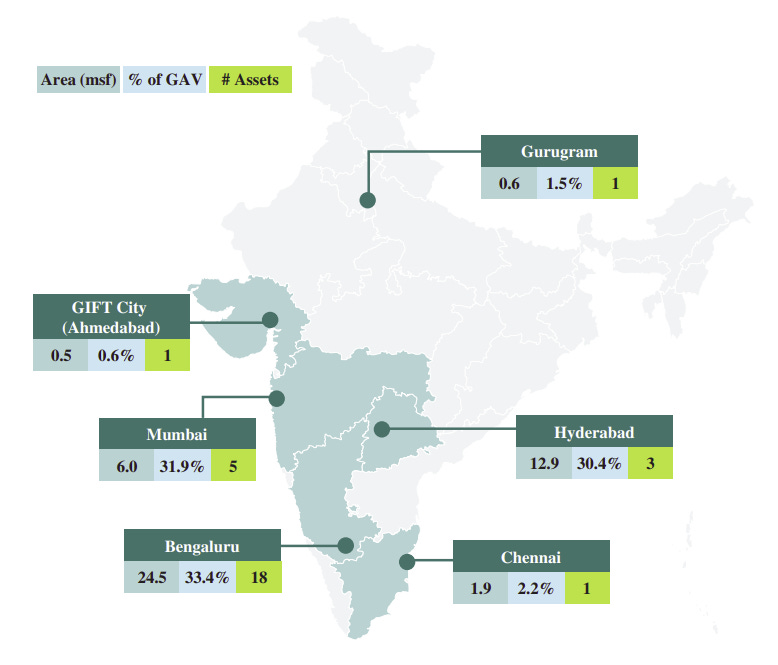 But as they say, real estate is about three things: location, location, location. You want to know where the properties are, and whether they’re in demand. Knowledge, for instance, owns about 46.3 million sq ft across 29 assets and 7 cities. But more than ~90% of those assets are concentrated in just three tech hubs: Bengaluru, Mumbai and Hyderabad. If you’re betting on the REIT, you need to know how comfortable you are with that.