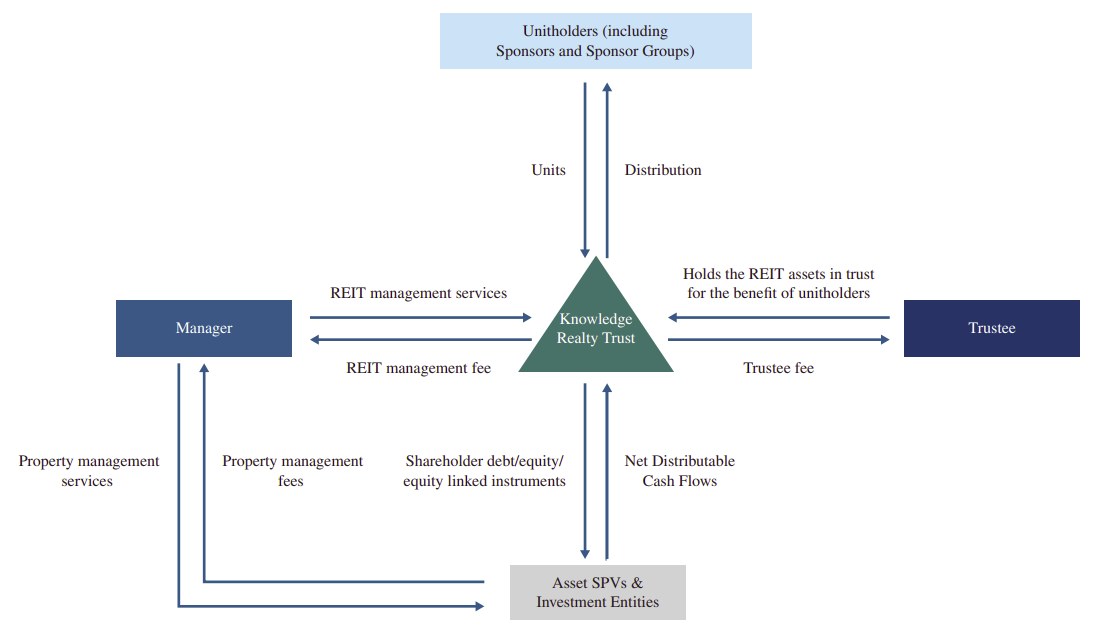 Investment Manager: While a trustee looks over a REIT, its day-to-day management — handling tenants, collecting rent, making acquisitions — is handed over to an investment manager. Basically, all the regular, operational work goes to them. Here, that’s the job of Knowledge Realty Office Management.
