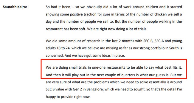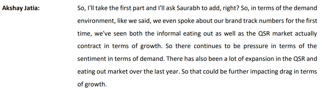 That illusion is breaking. This quarter, at least, none of that panned out. In fact, the company admitted what it had been avoiding for almost a year: fast food, it appears, is running out of demand. As Akshay Jatia, its CEO, said: