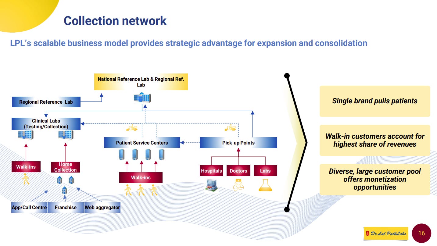 Dr. Lal PathLabs, for example, has just 298 labs, connected to a network of 6,607 patient service centers and 12,000+ pick-up points. That’s how they reach 29 million patients a year without building huge facilities everywhere.