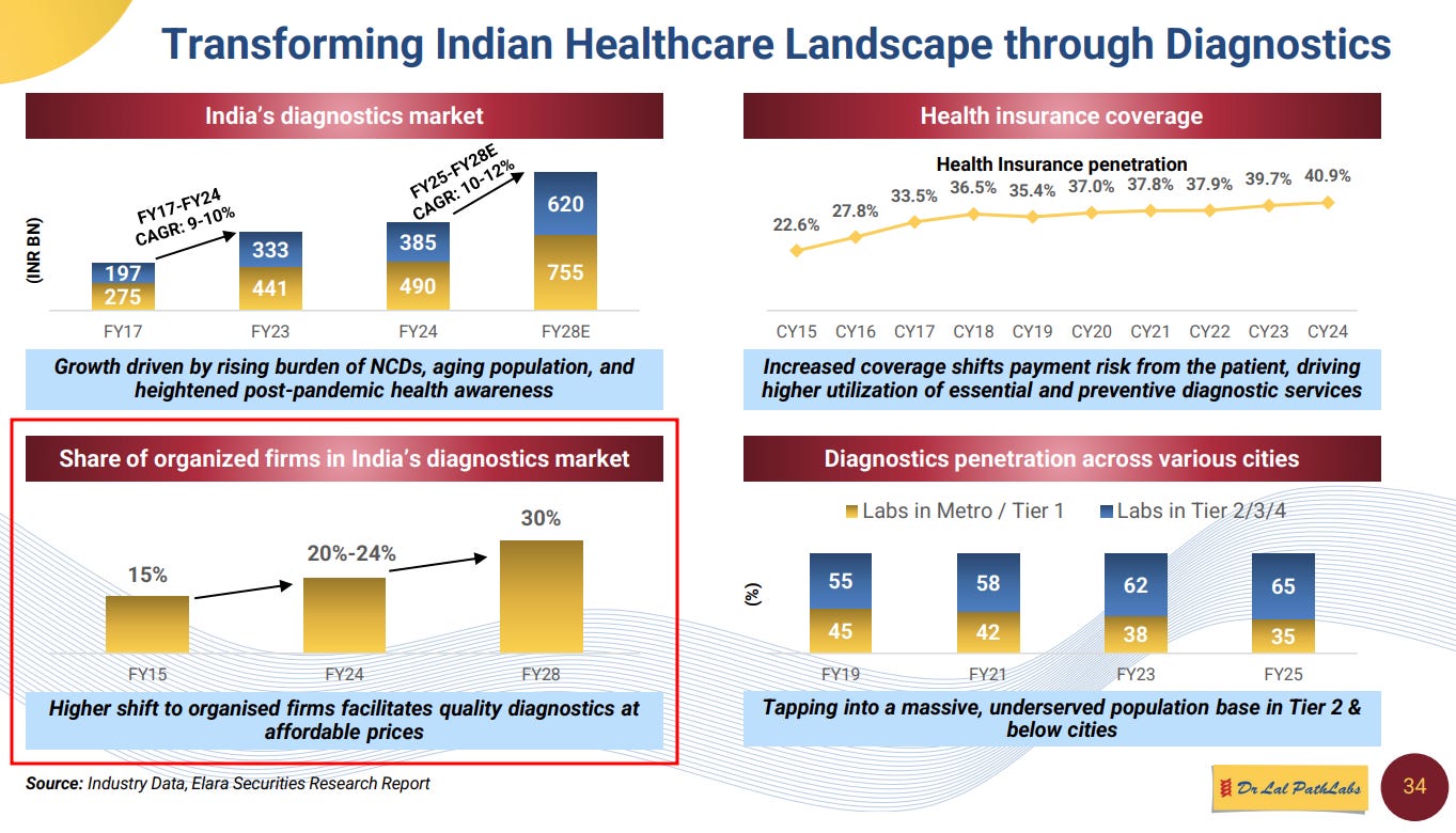 Third, advanced and specialized testing. This is the high-skill, high-margin end of the industry — with a focus on genetics, cancer markers, molecular diagnostics, hormonal tests, and more. CareEdge noted that genomic testing, in particular, is now one of the fastest-growing areas in diagnostics, consistently clocking double-digit growth and offering superior profitability. It requires very specialized machines and brings small volumes, but the margins are incredible. Dr. Lal and Metropolis keep highlighting this segment in their earnings.