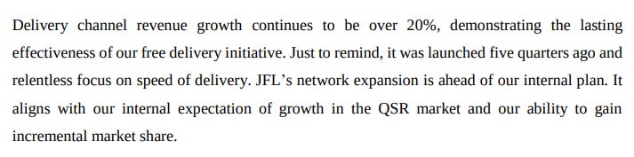 As Sameer Khetarpal, the CEO, put it, “Delivery channel revenue growth continues to be over 20%, demonstrating the lasting effectiveness of our free delivery initiative”