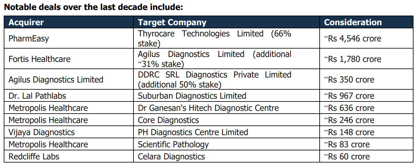 Diagnostics makes up less than 10% of India’s total healthcare spending. That’s tiny on paper. At the same time, though, diagnostics has been one of the most lucrative wealth-creation stories in Indian healthcare. Companies from the sector — like Dr. Lal PathLabs, Metropolis, and Vijaya Diagnostic — have built businesses worth tens of thousands of crores. The industry’s EBITDA margins have hovered around 25–27%, which is unheard of in most of healthcare. And the industry is growing steadily. CareEdge pegs diagnostics at a ~12% CAGR, heading toward a $15–16 billion market over the next few years.