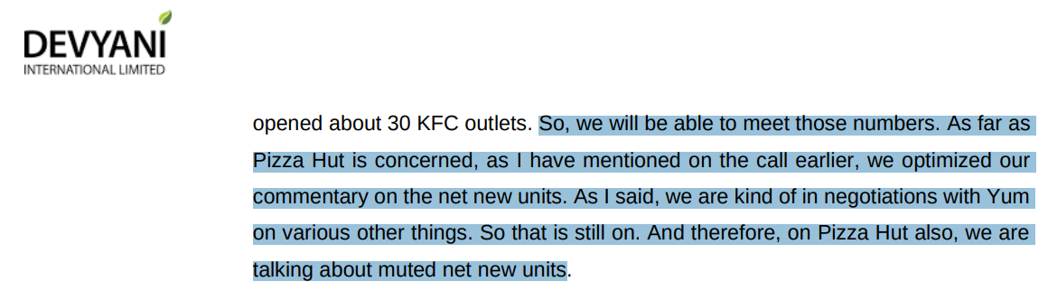 Similarly, Devyani had earlier promised a detailed Pizza Hut turnaround plan by August. Instead of presenting it, though, the management simply said they are “still in negotiations with Yum”.