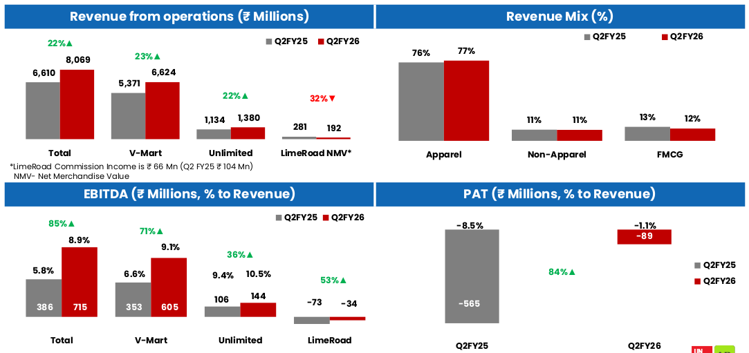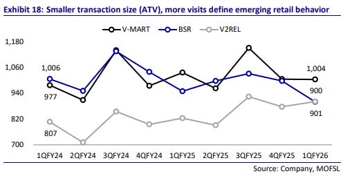 At a high level, Vishal Mega Mart emerges as the segment’s steadiest ship, with a healthy, growing business. Meanwhile, V-Mart is recovering from a bad phase, while V2 is scaling up rapidly to challenge the incumbents.