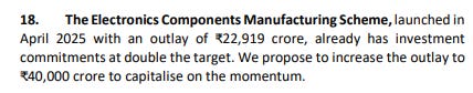 At the same time, the outlay for electronics components has been raised by ~75% to ₹40,000 crore.