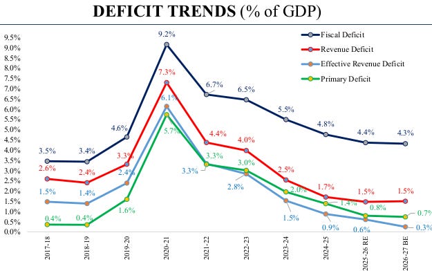 But this logic has limits. As we’ve seen, India’s interest burdens already make up a large share of its revenue. This is why, in 2003, India passed the Fiscal Responsibility and Budget Management Act, which set targets for the amount of debt we could take. Over the long term, the hope is that we find a “glide path” that brings the government’s deficit to under 3% of GDP. Besides, in any year, the central government’s total debt load should ideally come down to ~40% of GDP.