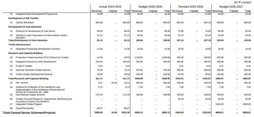 In contrast, though, labor-intensive sectors like textiles and apparel have slipped down the priority list. For instance, while the Budget has announced many schemes to promote textiles, this year’s capital outlay for the Ministry of Textiles has remained somewhat flat compared to last year. Moreover, the PLI scheme for textiles has also had a lackluster performance.