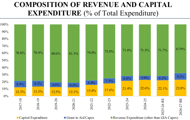 This has contributed to the increase in Railways spending. As per the National Rail Plan, the government aims to increase the modal share of rail in India’s total freight movement to 45% by 2030.
