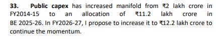 In the coming year, the government plans to boost direct capital expenditure to ₹12.2 lakh crore.