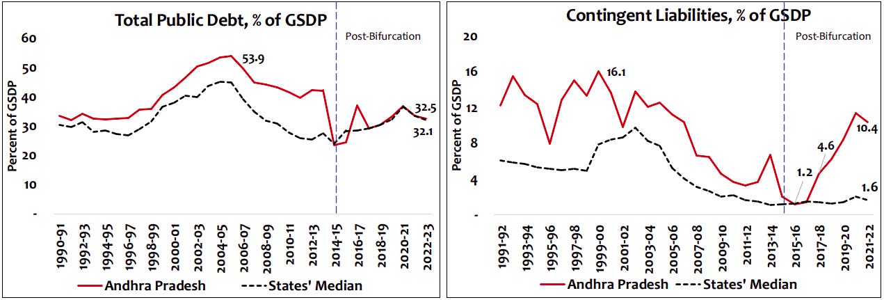The foremost of these is debt. All those massive subsidies and schemes cost money — and Andhra is making do with borrowed money. Its debt ratios are well above median. As Chief Minister Chandrababu Naidu said, “Borrowing at high interest rates, coupled with stagnant revenue and poor fiscal discipline, has trapped AP in a debt spiral."