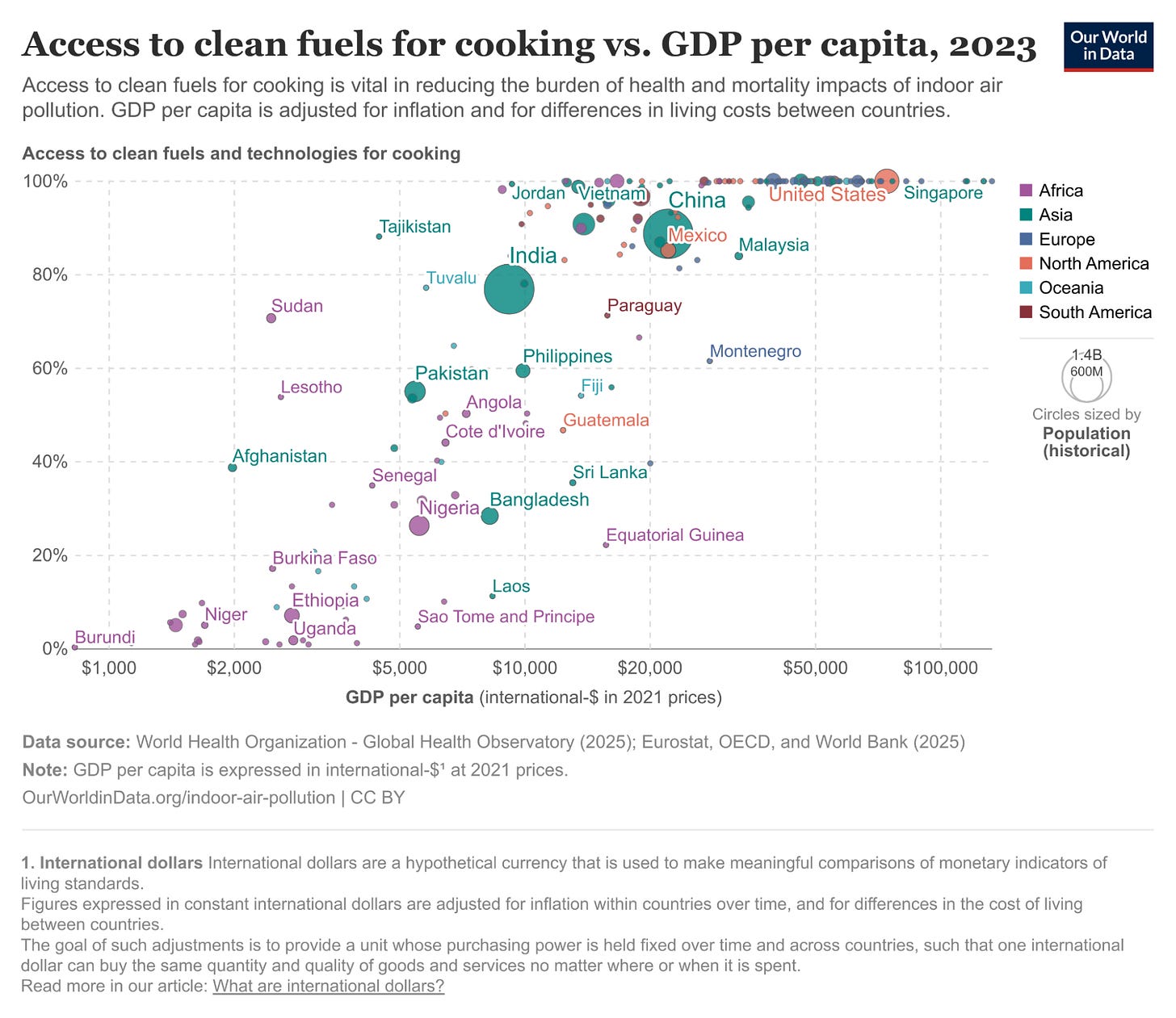 In the poorest parts of the world, even people that, on paper, have access to money and electricity are often “energy poor”. Take our own country — despite near-universal electricity access, ~65% of India experiences some form of energy poverty. They might have electricity access, but for less than 12 hours a day. Or they may technically be covered under LPG schemes, but find it hard to actually receive a connection.