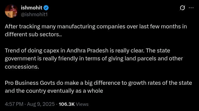In the aggregate, all of this has translated into a rush of investments from firms. So far, this year, AP has recorded the highest increase in capital expenditure (69%) among all states. And many companies have been vocal about how business-friendly AP is.