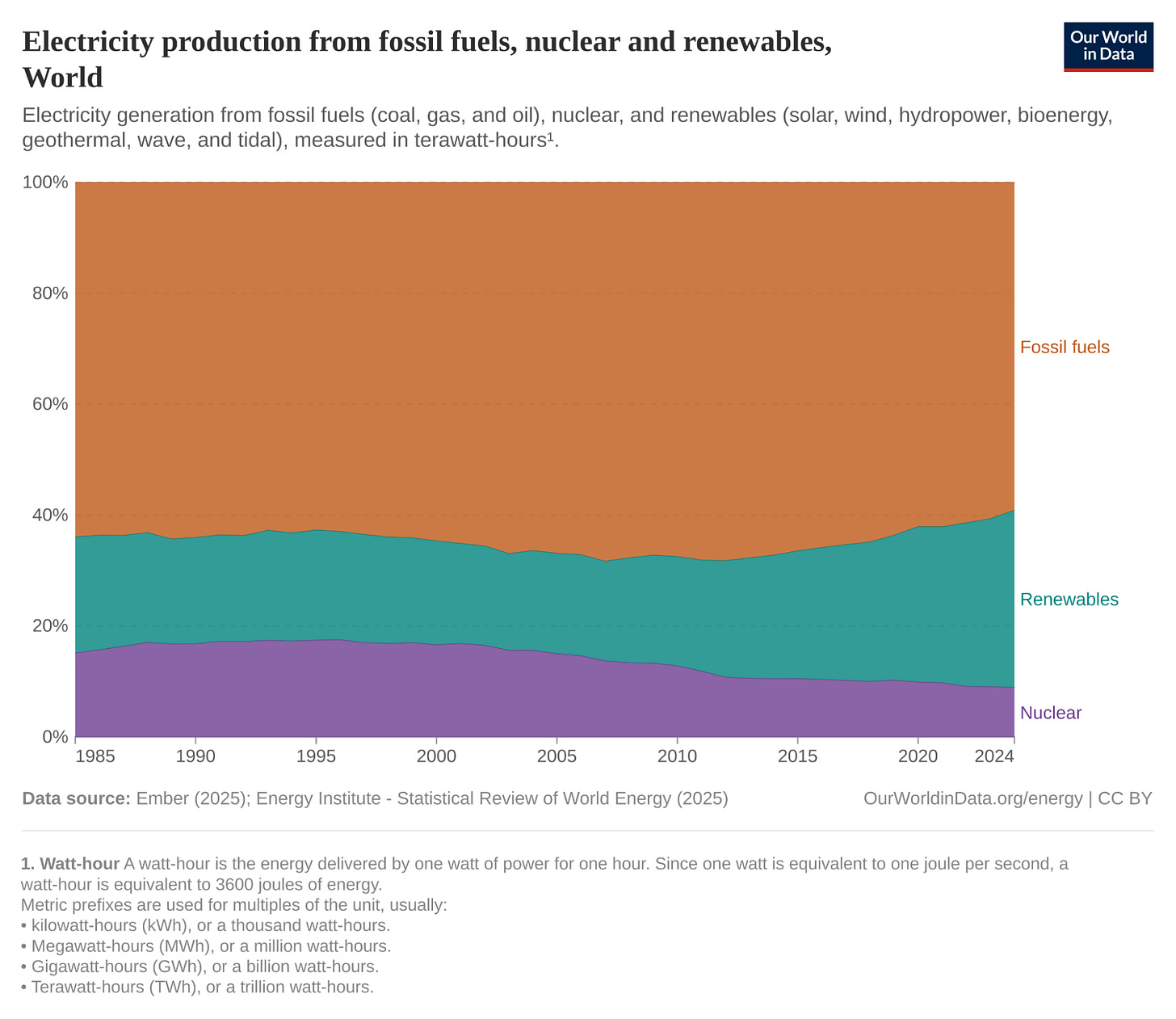 One reason, perhaps, is that even the poorest people, in rich countries, consume energy. And despite the dramatic increase in renewables, much of it still comes from fossil fuels — in fact, they still power 60% of all global energy. Meanwhile, the world’s total energy demand keeps growing faster than we can add clean power.