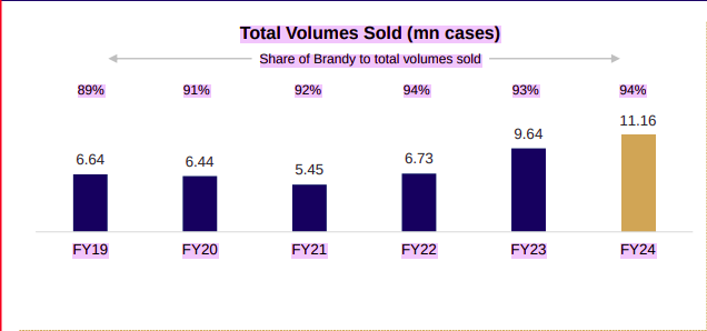 On the other hand, mass-market whiskies have been slumping in sales. There’s no better example of that than Imperial Blue itself. Its volumes have been flat over the last few years. In fact, between 2019-24, it actually fell by 4%.
