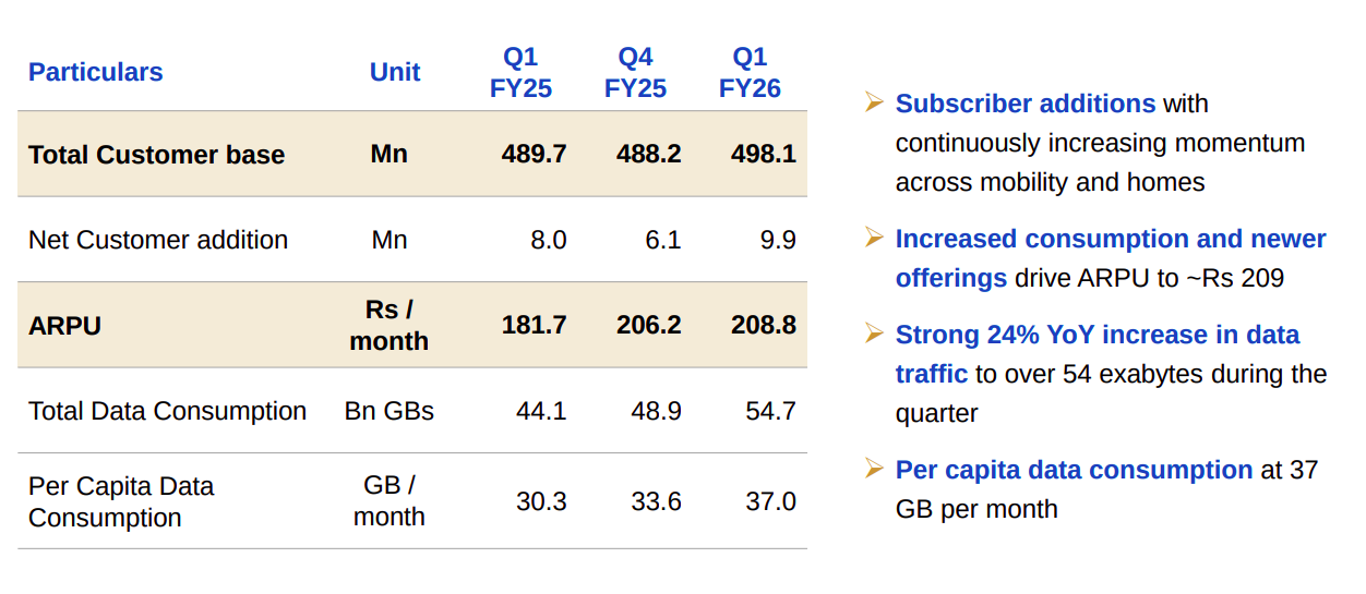 Volumes aren’t all that’s driving higher revenue, though. People are also paying more for Jio services than before. Just one year ago, customers paid Jio an average of ₹181.7 per month. They now pay ₹208.8 per month — a difference of 15%.