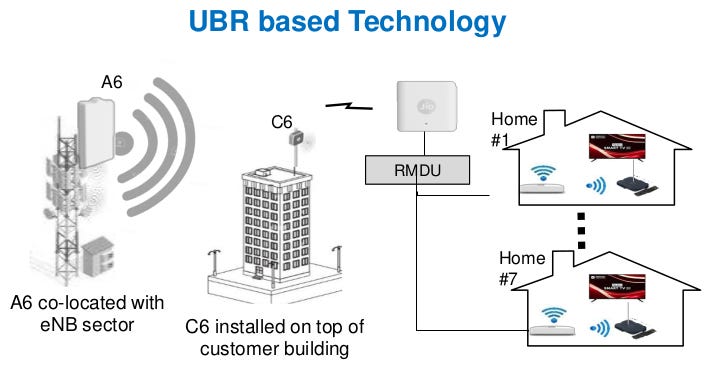 JioAirFiber flips that math. It simply mounts a small radio unit on your nearest rooftop, which beams internet to your house. That’s much easier to scale. It does so using what’s called ‘UBR’ or ‘Unlicensed Band Radio’ — unlicensed frequencies of the sort that are used for Wi-Fi.