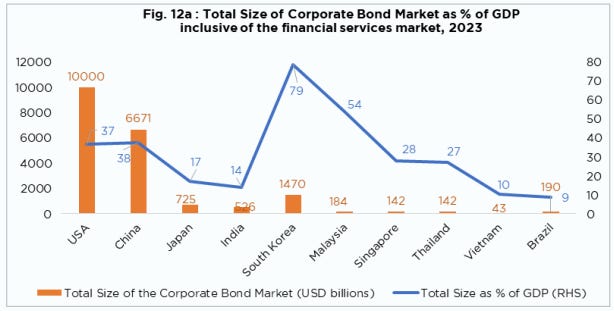 While this trajectory is reassuring, growth rates can deceive. India’s corporate bond market still accounts for only about 14–16% of our GDP. That’s low by global standards. For instance, in South Korea, corporate bonds amount to nearly 80% of GDP. In Malaysia, they come to 54%. The market has been growing, yes — but in absolute terms, it remains startlingly thin.