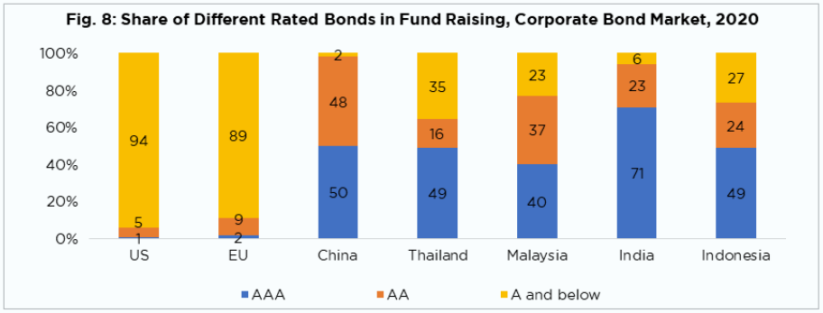 When a company’s rating slips even one notch below AA, it effectively loses its entire institutional investor base overnight. This steep cliff discourages new issuances, and concentrates the market at the very top.