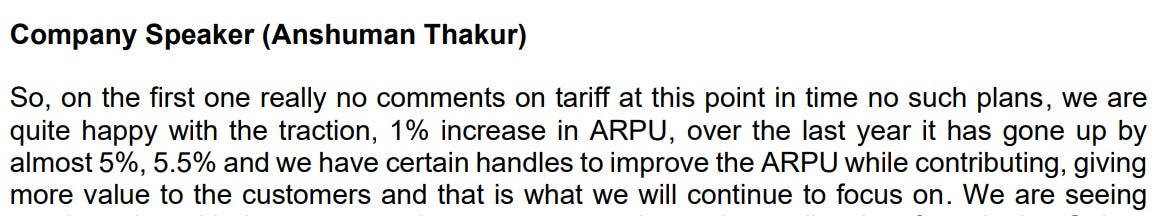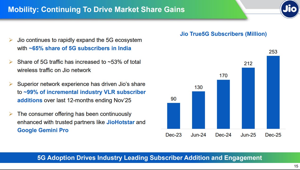 Interestingly, as per management, Jio accounted for almost all of the net new active mobile users added over the past year. They claimed that 99 out of every 100 users who signed up chose Jio.