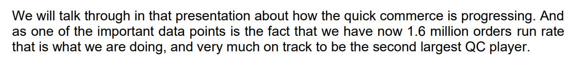 Yet, Reliance Retail continues to spend aggressively. It is expanding its store network, investing in logistics, and pushing hard into quick commerce. Management said its quick commerce operations are now running at around 1.6 million orders a day — on track to be the second-largest quick commerce player in India by volume. Blinkit, the largest player, has about 2.4 mn daily orders.