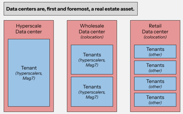 The tenants to these landlords are the hyperscalers: Microsoft, Amazon, Google, Meta and other familiar names. Hyperscalers rent out completed data centres, and install server racks and GPUs (usually purchased from NVIDIA) to run their AI workloads.