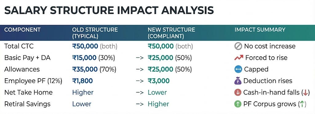 The Code on Wages, however, closes these loopholes — as it consolidates all those legislations, it also gives them all a single definition of “wages”. Crucially, no matter how a company structures its pay-slip, for legal purposes, at least 50% of your CTC will now be considered “basic pay”.