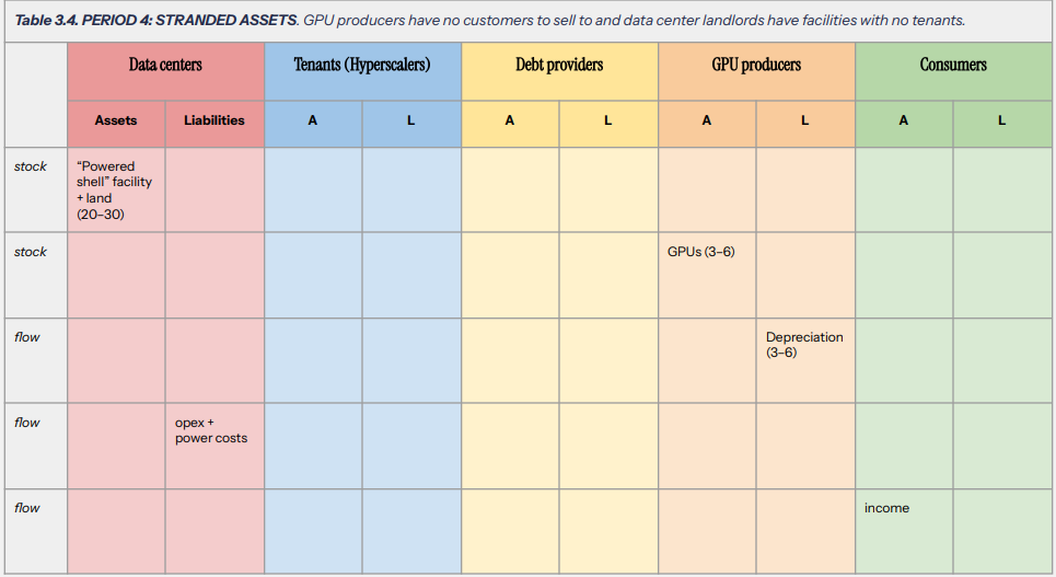 …leaving us with just stranded assets all the way down. NVIDIA no longer has customers, while hyperscalers and landlords have facilities with no tenants, while banks have to eat huge losses. With the probable exception of Big Tech firms, many firms building consumer apps will have to shut down. An entire ecosystem could grind to a screeching halt.