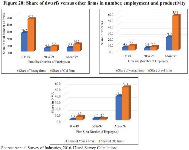 Companies, as a result, would simply refuse to hire as much. If they needed more people, many would default to “contract workers,” who were outside the purview of these laws, and could therefore be fired at will. These are called “dwarf firms” — they had been around for long enough to mature, but hadn’t grown at all. Dwarfs account for more than half of India’s organized manufacturers, but only employed 14% of India’s workers, and contributed merely 8% to India’s productivity.