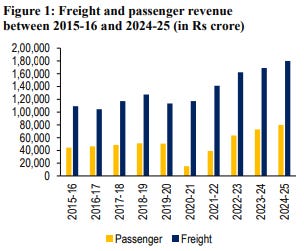 There was also a pricing distortion baked into the system. Passenger fares in India have long been kept artificially low, well below the cost of actually running those services. This is cross-subsidized by over-charging freight customers — like steel companies, coal plants, and so on. To some degree, this policy shrank the cost advantage that rail freight enjoyed. And once you added in the speed, reliability, and door-to-door convenience that road offered, shippers preferred trucks more than rail.