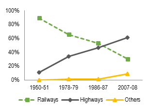 In 1950-51, Indian Railways carried almost 89% of the country’s freight. But today, that share has dwindled down significantly to 18%. Roads, meanwhile, carry 71% of India’s freight today.