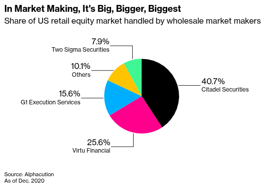 But the real reason Citadel wants retail orders specifically is that they’re almost risk-free to trade against. When a hedge fund’s algorithm sells Apple aggressively, that’s a signal that it might know something crucial. Taking the other side of that trade is dangerous. But when a regular person buys 10 shares because they like the company, that trade carries no information. The price isn’t going to move because of it. Retail orders are small, relatively more uninformed, and predictable. For a market maker though, that’s the ideal counterparty.