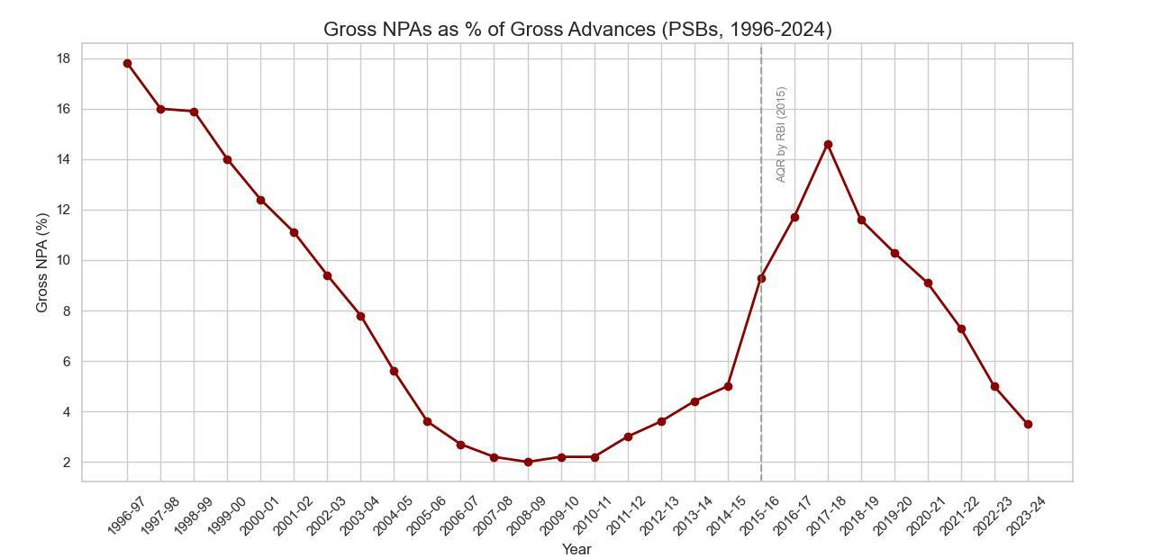 That caution only hardened into conviction after the 2010s infrastructure binge. Banks lent aggressively to highways, power plants, and steel projects. By 2018, more than 10% of loans had gone bad, and at public-sector banks the figure was closer to 14%. To make matters worse, crony lending was rampant — bank officials were preferentially handing out loans faster to certain clients than others, often due to bribes.