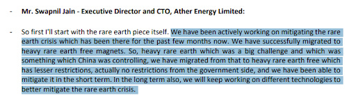 Then comes Ather, which seems to have taken a more measured approach. The company has shifted away from “heavy” rare earth magnets — the ones China controls most tightly. That doesn’t mean its alternatives don’t have any rare-earths; only, they have “light” rare-earths, and avoid elements like dysprosium and terbium. These heavier elements handle high temperatures better and prevent the magnet from losing power when it heats up. And so, Ather’s alternatives cut supply-chain risk, but that might come at the cost of some efficiency, especially at high temperatures.