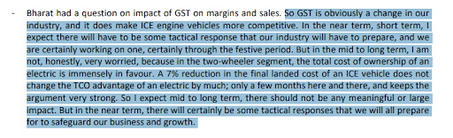 Crucially, EVs are usually cheaper to run over their lifetime, since electricity is cheaper than fuel. Ideally, a 7% reduction in petrol bike prices might not change that equation much. Even so, in the short term, EV companies may be under some pressure to respond. Ather, for instance, expects some short-term defensive pricing or discounts to prop up sales.