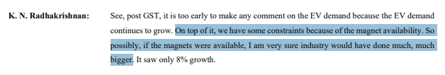 The management of TVS, similarly, just said that the industry would’ve done “much, much bigger” numbers if magnets were available.