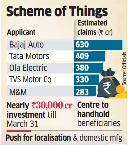 Let’s start with the PLI scheme, which gives out 13-18% of EV sales value as cash-back to companies that meet strict investment conditions. Last quarter, that money made a lot of difference: both to those who got it, and to those who didn’t.